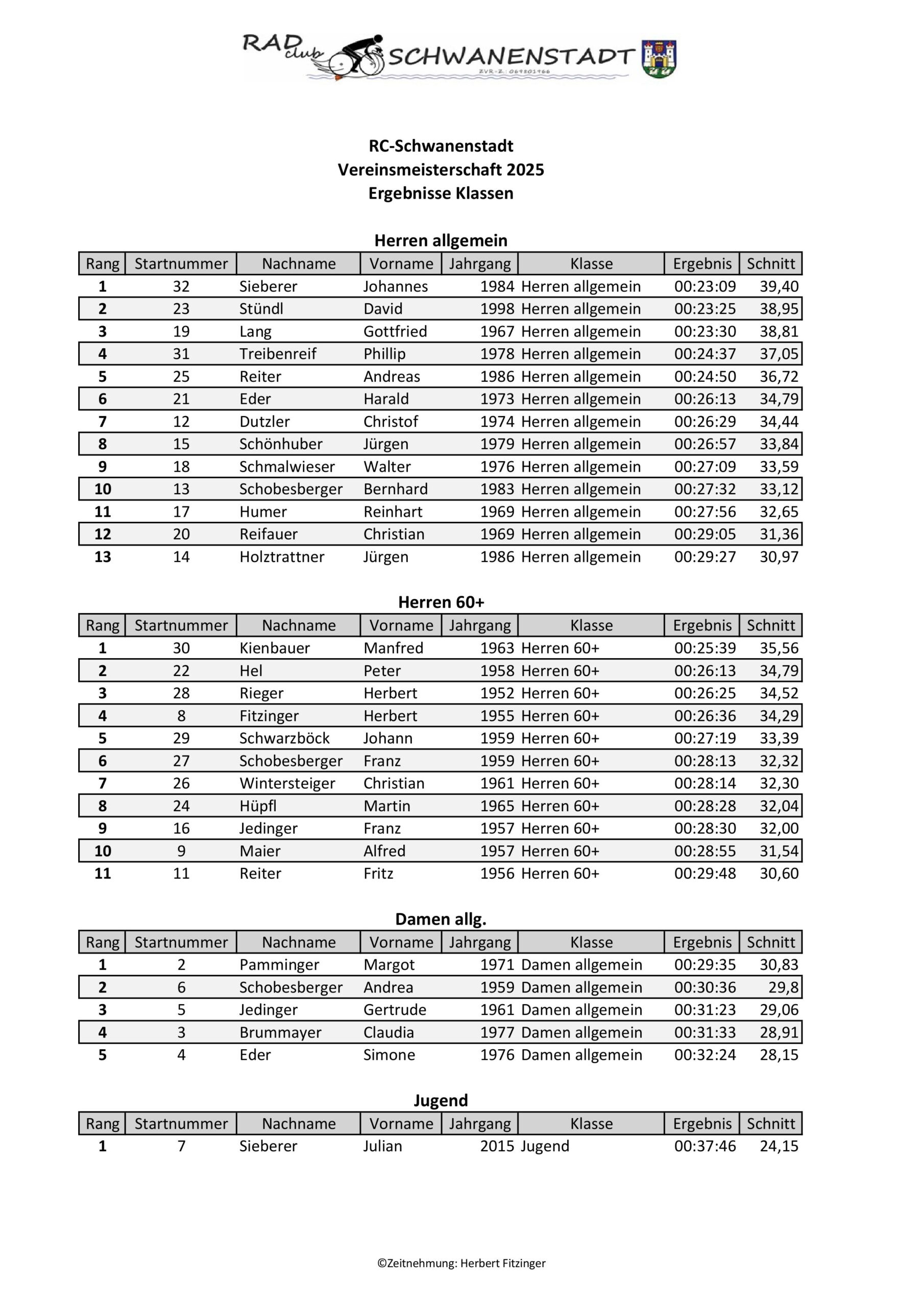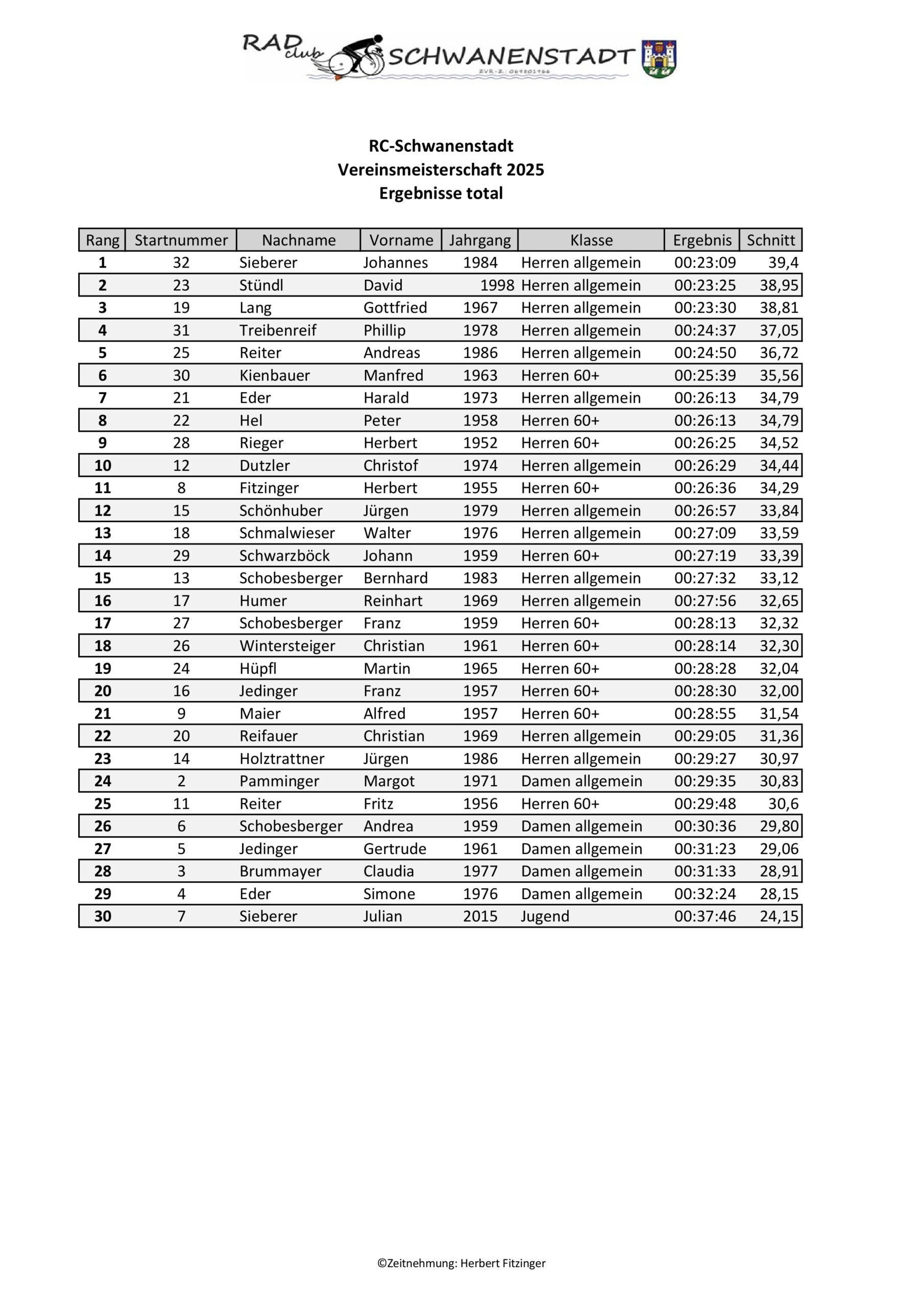 Im Rahmen dieses Festes wurde auch die Vereinsmeisterschaft im Einzelzeitfahren ausgetragen.